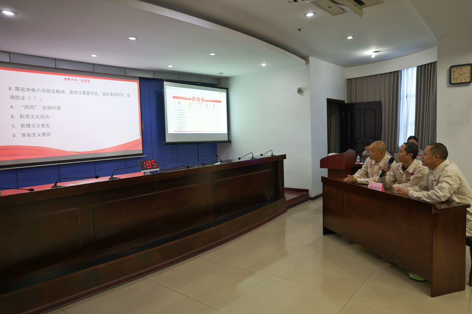 作为冲刺全年目标任务的动员令,竞赛紧扣生产经营关键领域设计题库,涵盖中央八项规定精神、国企领导人员廉洁从业规定、党内行为准则规范等核心内容,重点聚焦集团党委提出的“三个五”具体要求、技改项目招标、物资采购监管、安全生产责任等生产经营重点工作设置考题。来自9个党支部的代表队伍同台竞技,以赛促学,经过速答、抢答、攻防赛三轮角逐,参赛队伍均展现出坚定的党性纪律和的过硬的知识储备。最终,储运党支部、技改项目临时党支部和进出口供销党支部三队分别斩获一、二、三等奖。