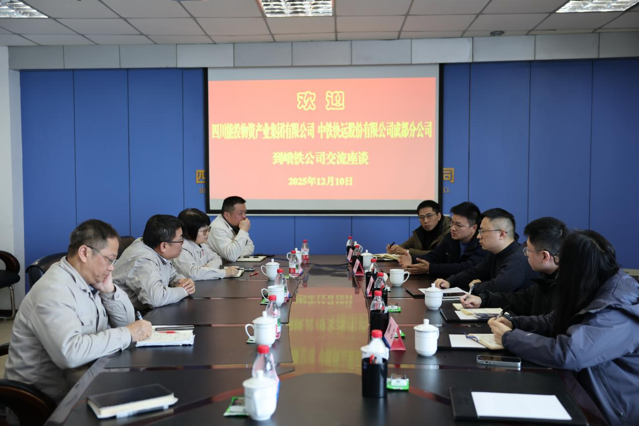 12月10日,四川能投物资产业集团有限公司副总经理刘施成与中铁快运成都分公司主任孟繁志一行五人到访峨铁公司,双方围绕物资集采、产业链延伸和物流优化等议题展开深入交流。峨铁公司党委书记、董事长、总经理陈新龙主持座谈。
