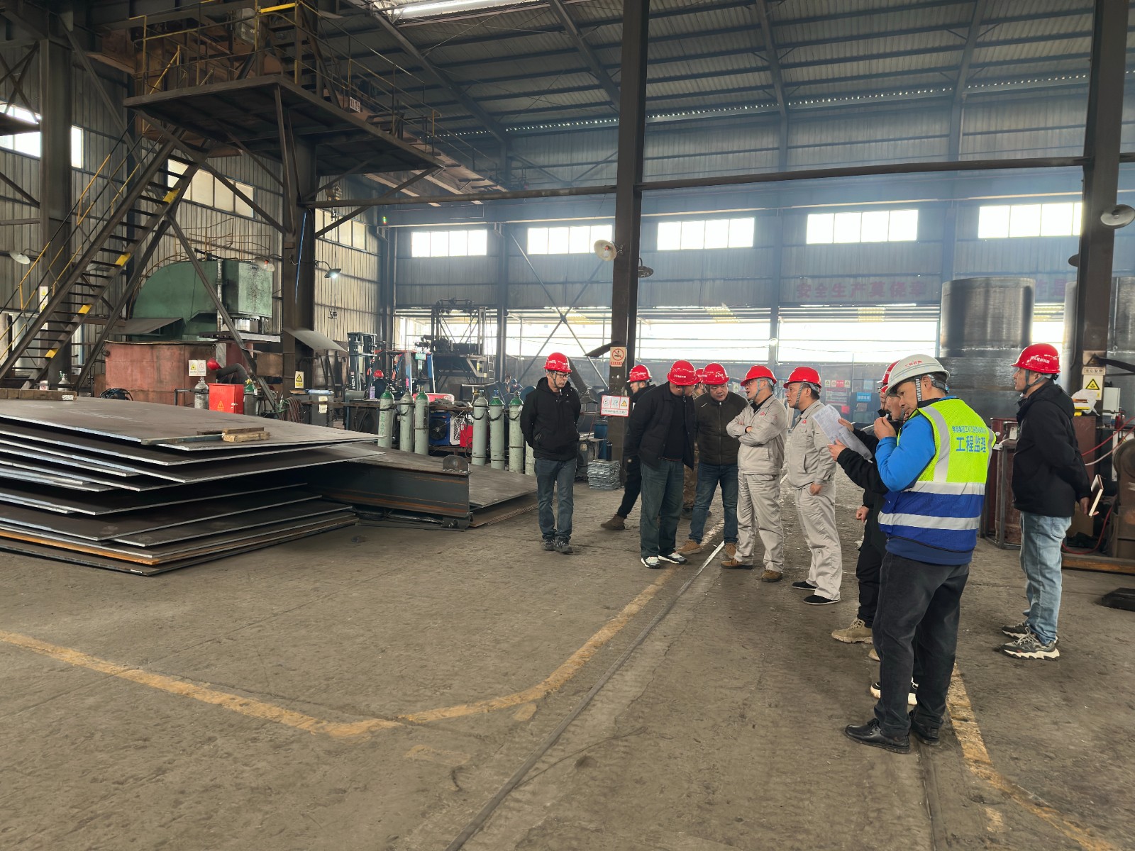 陈新龙首先详细了解了项目整体推进进度、设备监造全流程管控措施、质量验收标准及后续供货保障计划等工作情况;随后,在设备制造车间实地查看了料仓、炉底工字钢等关键部件的制造工序规范和质量达标情况,细致核查已完工部件的工艺精度、规格型号符合型及现场仓储保管情况。检查过程中,陈新龙重点聚焦关键质量控制点设置科学性、出厂试验数据标准严谨性、零部件到场验收流程规范性等核心环节,逐一询问细节、厘清管控要点,并明确要求设备供应方严格恪守质量承诺,强化生产全流程质量管控,严格按照技术标准和时间节点推进部件制造,确保交付的每一件产品都符合规范要求,技改项目部要进一步加强统筹协调力度,严把关键设备制造各环节质量关口,全力以赴做好设备监造与供货协调工作。