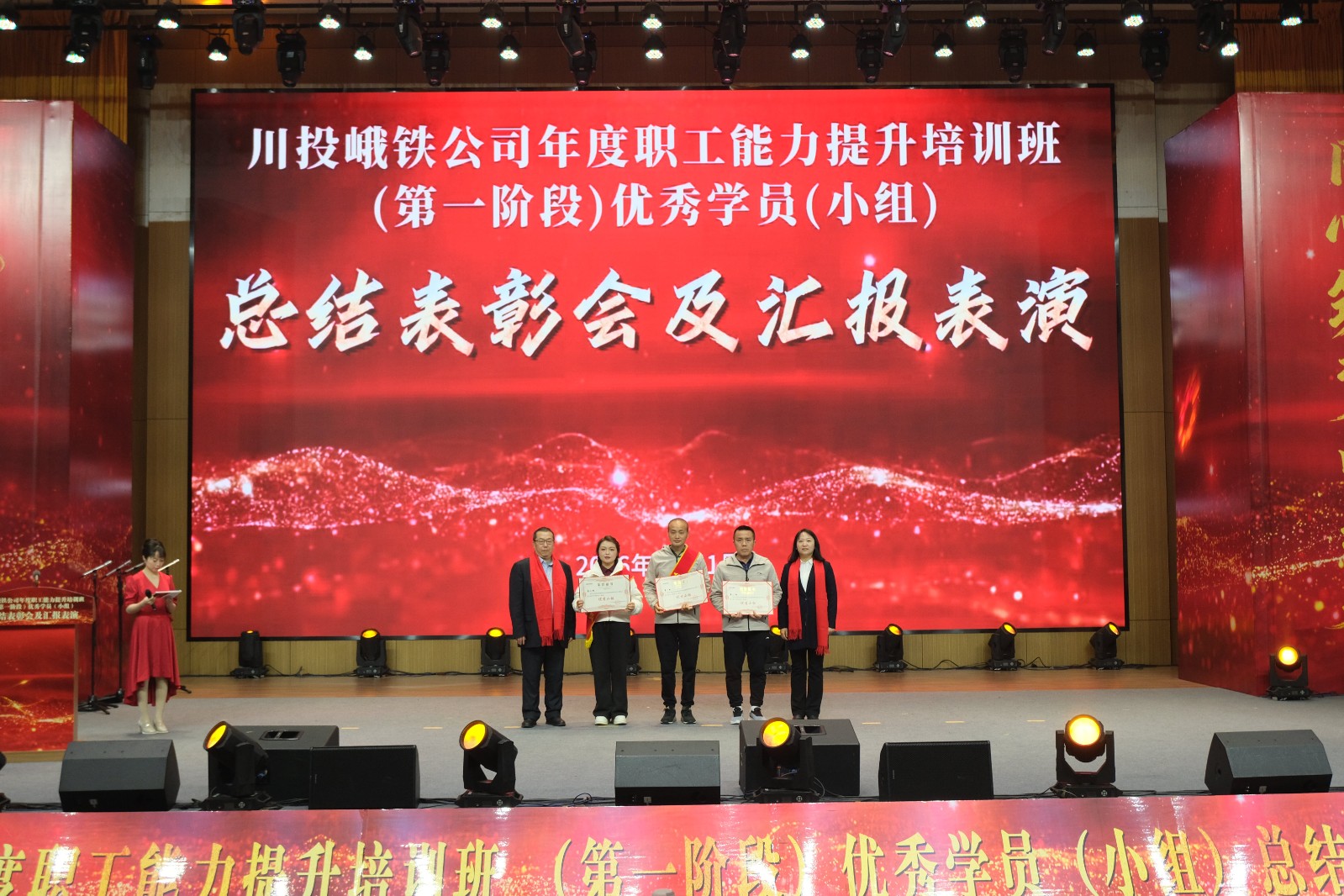 瑞气迎新春,聚力向未来!2月11日,峨铁公司年度职工能力提升培训班(第一阶段)优秀学员(小组)总结表彰会及汇报表演活动在峨眉党校初心厅圆满举行。公司领导、员工及家属、培训班授课老师、项目建设施工方和监理方的管理人员参加。