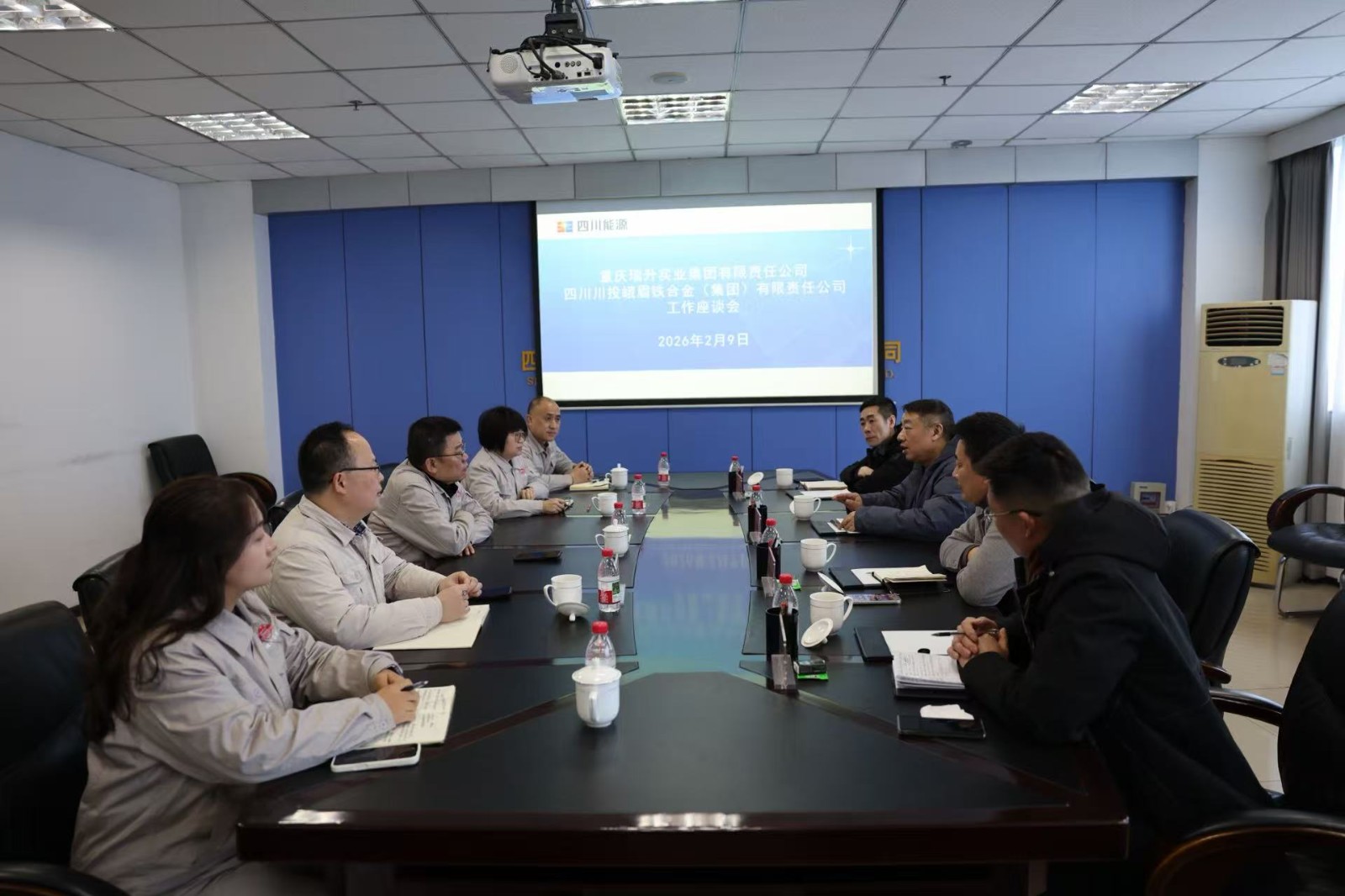 陈新龙对谭晓川一行的到访表示诚挚欢迎,对瑞升实业集团长期的支持表示感谢。他表示,峨铁公司当前正全力推进技改升级工作,相关项目的落地实施将进一步提升企业生产效能和技术水平。峨铁将与瑞升实业集团加强信息互通,推动双方在技术、市场、资源等方面实现成果共享,共同面对铁合金行业发展挑战。