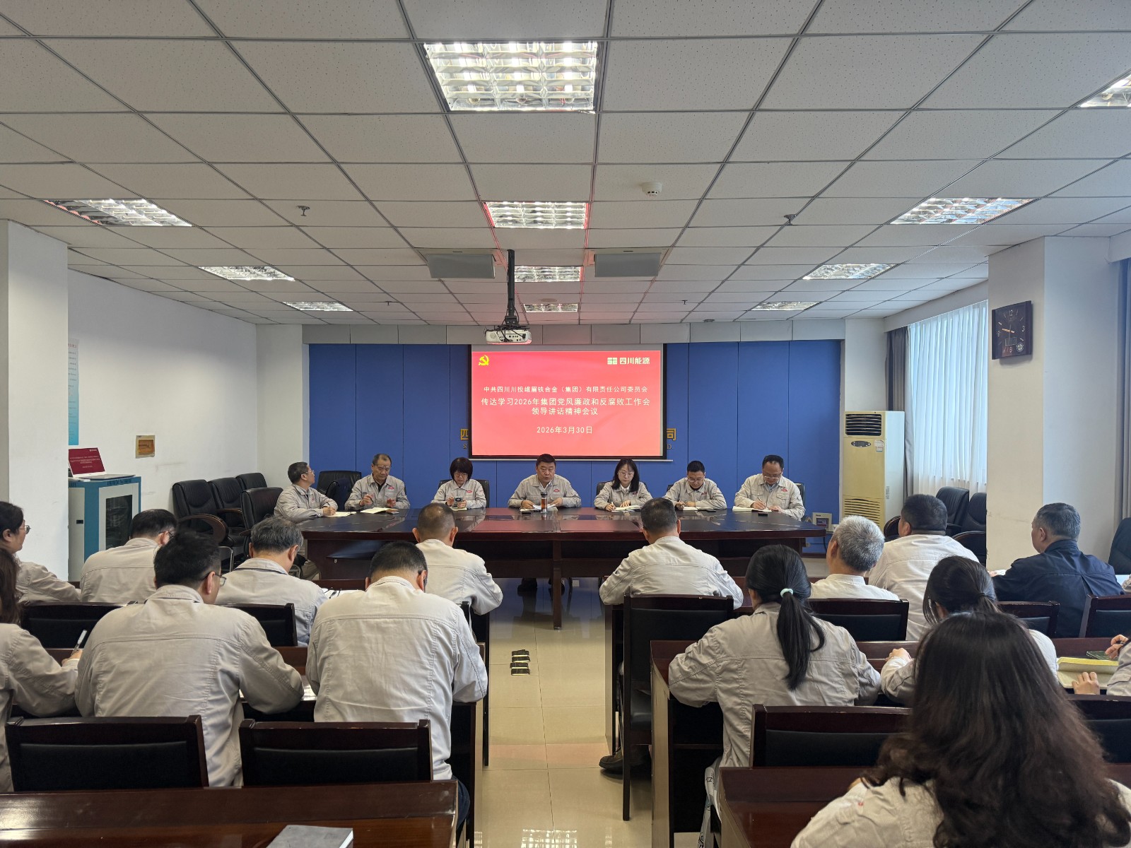 3月30日,峨铁公司召开专题会议,传达学习集团2026年党风廉政建设和反腐败工作会议精神。公司党委书记、董事长陈新龙主持会议,公司领导班子成员、中层管理人员及供销、财务、人力等关键岗位员工参加会议。